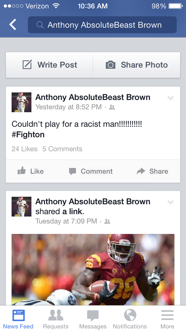 I mean, really. You spend four years playing on USC's football team (Brown is a RS senior) and then, in your fifth year, you claim "slavery"?