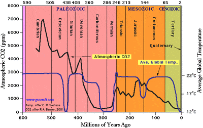-earth was 30C in the carbiniforous period due to millions of years of heavy volcanic activity