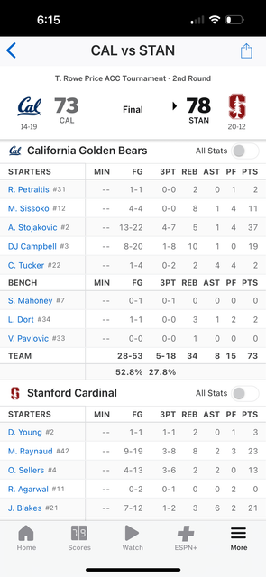 absolutely, gambling on steals and giving up layups, and then trapping at the inbound which allows stanford to run down the court for a transition basket after made FGs. Those cannot happen at this level we were defending them well without gambling for steals.Troll On You Bears said: