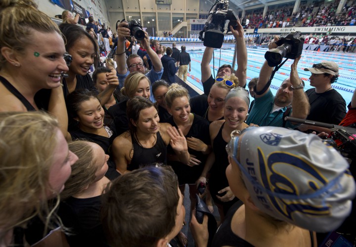 What this now gives to Cal coach Teri McKeever is a luxury she's enjoyed for years: she has the opportunity to use any number of different combinations in this 800 free relay and prevent any of her stars from becoming overloaded with races at NCAA's without sacrificing points.
