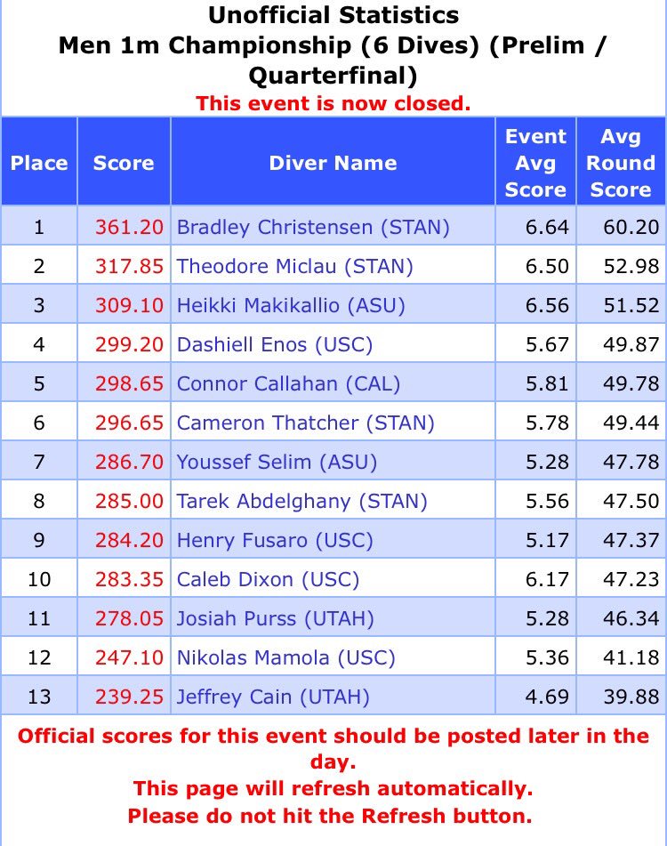 [COLOR="#DAA520"]Matthew Josa[/COLOR] started his career in the NCAA's Division II, where he won 10 NCAA titles and scored a perfect 120 NCAA points. He took two DQs in scoring races this year for Cal in Division I, which drags down his numbers some, but he's got one year of eligibility remaining and should add to his numbers next year.