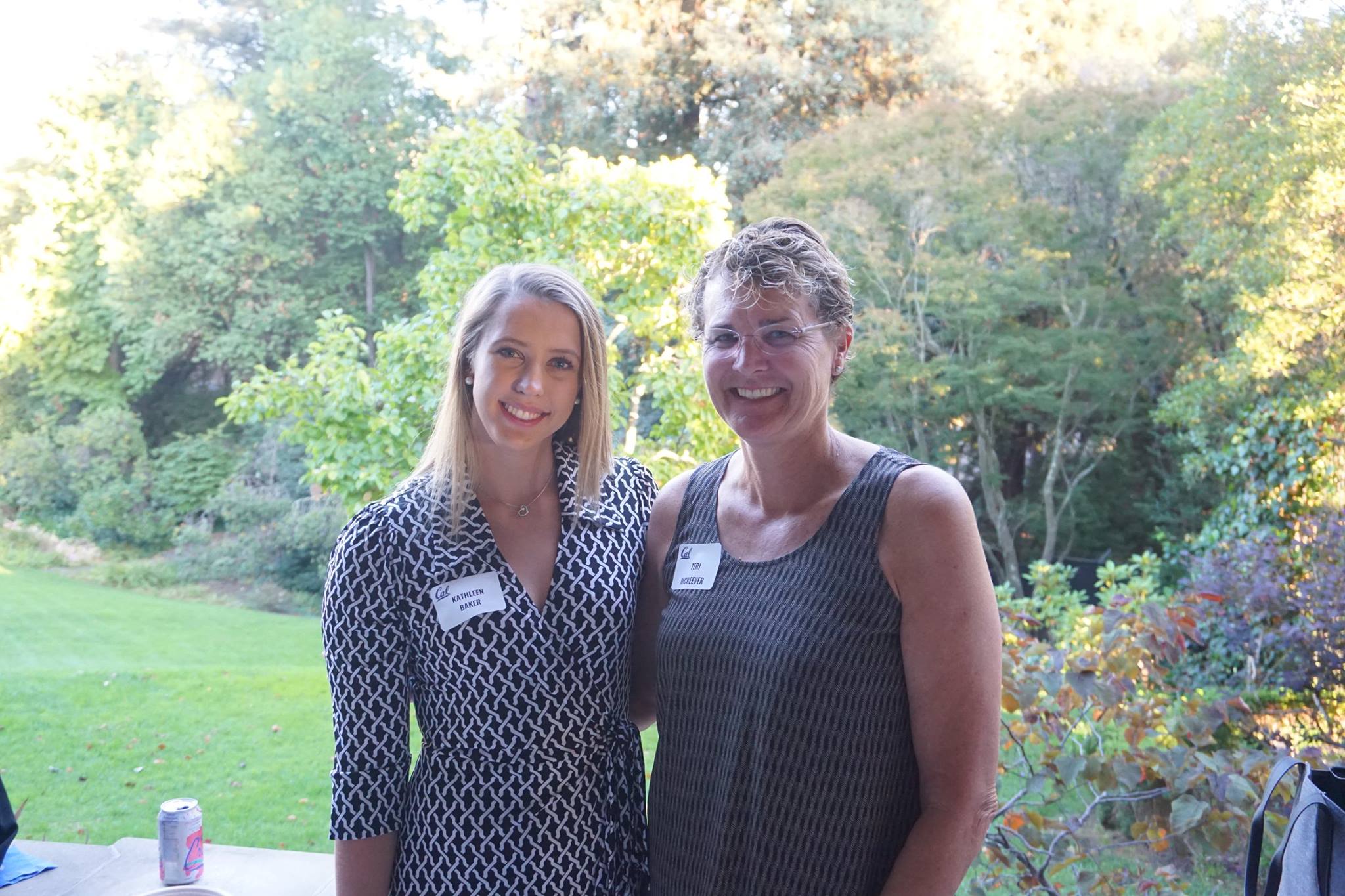 Alexa S-K and Alex S in street clothes, working the apparel booth.