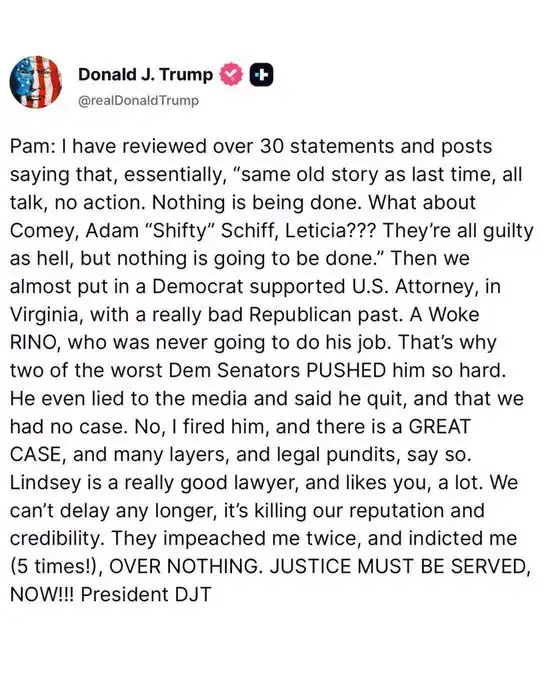 At one point, she entered the wrong courtroom. When she found the right one, she stood on the wrong side of the judge, then appeared confused about the paperwork she just had signed."https://www.nytimes.com/2025/09/27/us/politics/trump-comey-justice-department.html"Lindsey Halligan, 36, was sworn in as interim U.S. attorney for the Eastern District of Virginia on Monday, taking over one of the most significant prosecutorial offices in the country despite having no experience as a prosecutor at any level……