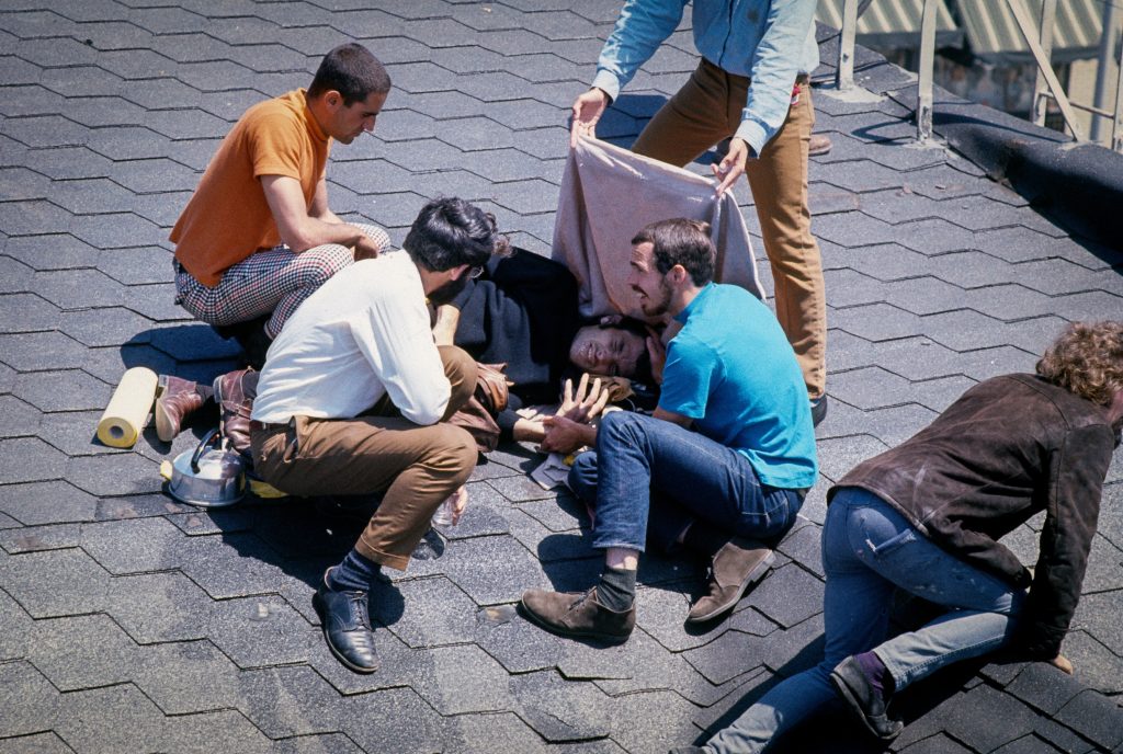 Shot by a Capitol Police officer while breaching a barricaded doorway