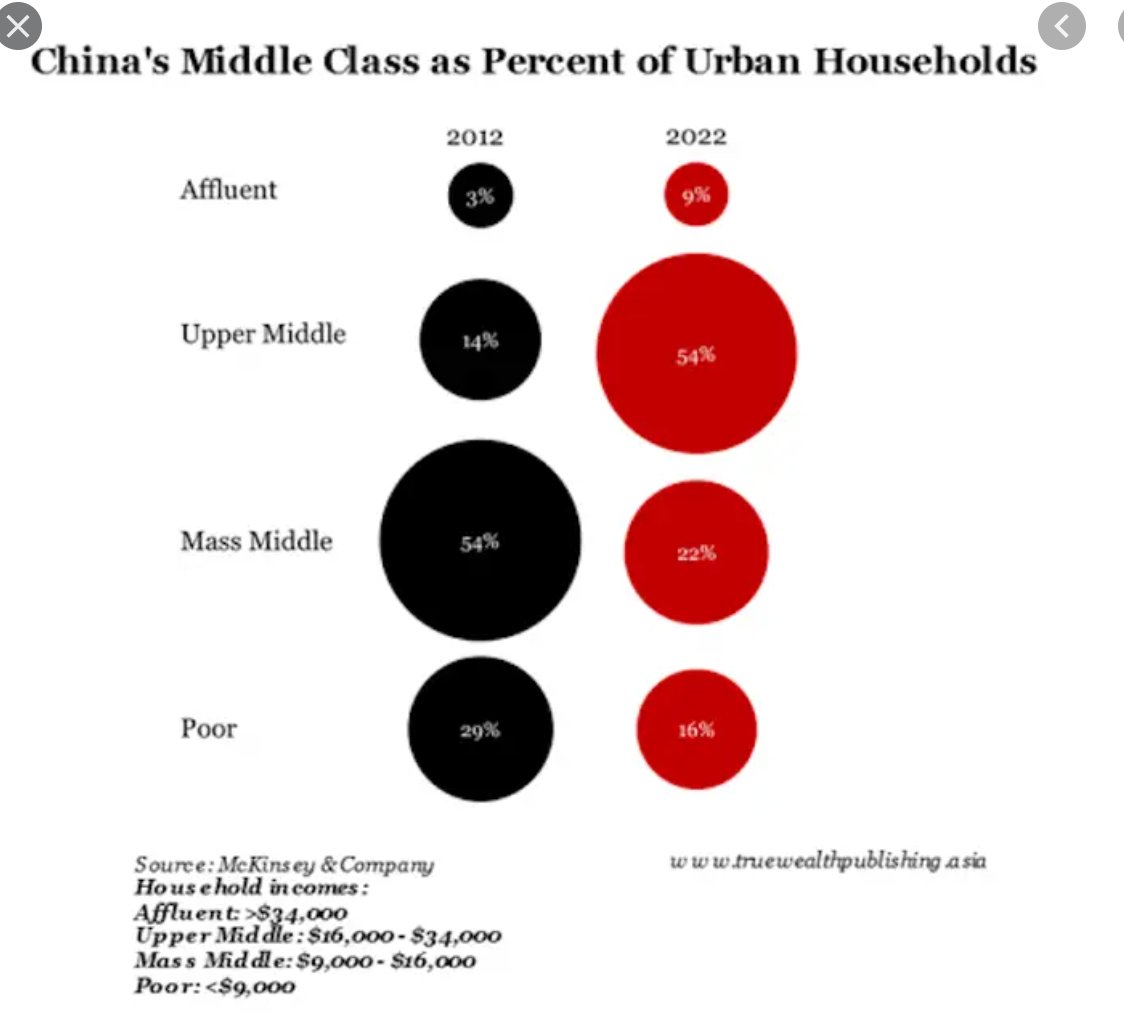 The Chinese middle class is thriving, covid hickup nothwithstanding. Their government has presided over what has been the greatest creation of national wealth in history; never in the history of mankind have so many people been lifted out of poverty in such a short time, with 600 million Chinese achieving middle class status or better.